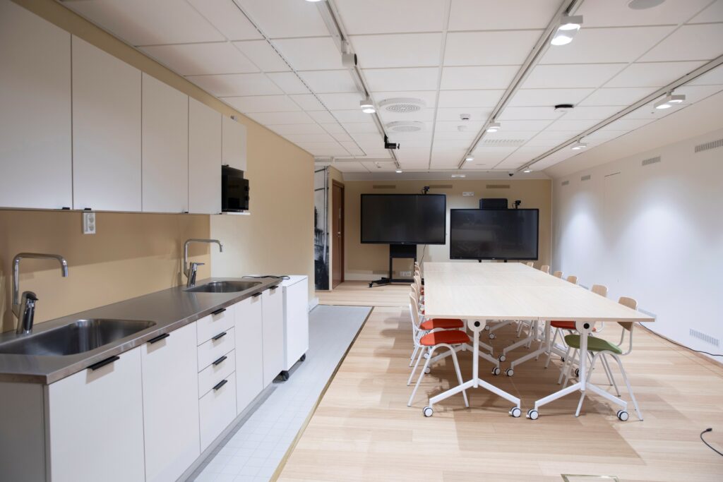 Työpaja- tai yhteistyöskentelytilana toimivassa ullakkohuoneessa on mahdollista järjestää erilaista toimintaa kokouksista työpajoihin ja sen pääasialliseen kalustukseen kuuluu työpöytiä ja tuoleja. Huoneessa on lisäksi esitystekniikkana kaksi näyttöä sekä pieni keittiö, joka on hyödynnettävissä tarjoilujen järjestämisessä. Tila on varattavissa yksityistilaisuuksiin klo 8-20 välillä.