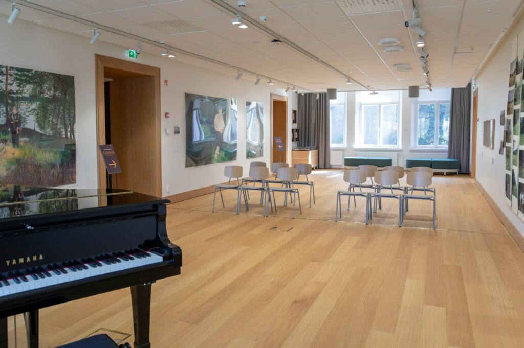 Tapahtumasali on aseteltavissa luentotilaksi tai ruokailua varten. Tilassa on esitystekniikkana isoja näyttöjä sekä äänentoiston mahdollisuus. Tilassa on myös piano ja siellä on mahdollista järjestää musiikkiesityksiä. Sali on varattavissa tilaisuuksille myös aukioloaikoina, mutta museon ollessa avoinna sen kautta on pakollista kulkua muihin näyttelytiloihin.